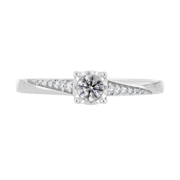 Anillo Solitario con Centro 0.10 Quilates y Montadura 0.06 Quilates de Diamante en Oro Blanco de 14 kt