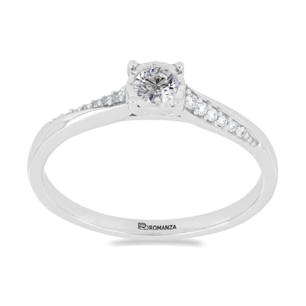 Anillo Solitario con Centro 0.15 Quilates y Montadura 0.08 Quilates de Diamante en ORO BLANCO de 14 kt