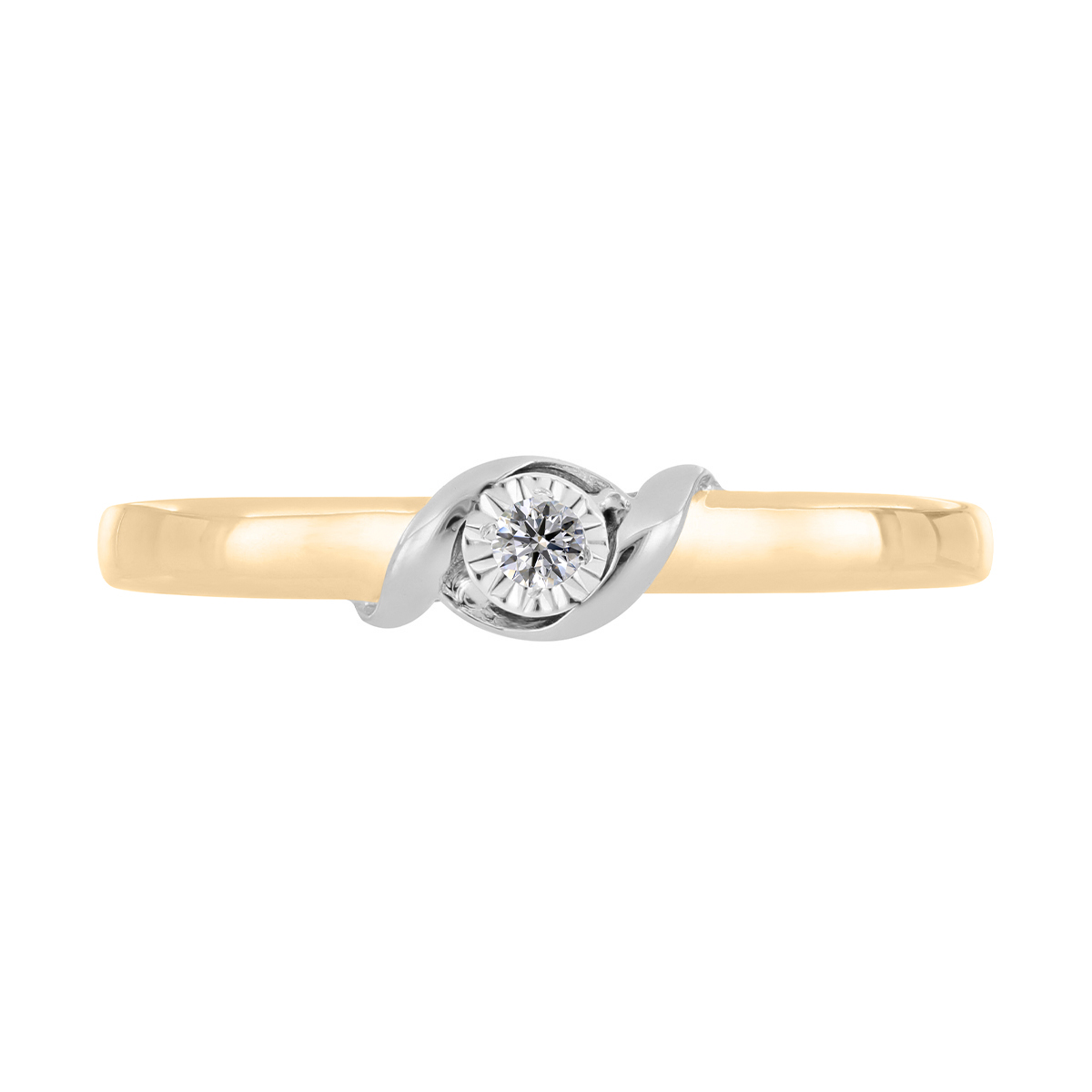 Anillo Solitario Ilusión con Centro 0.06 Quilates de Diamante en Oro Combinado de 14 kt