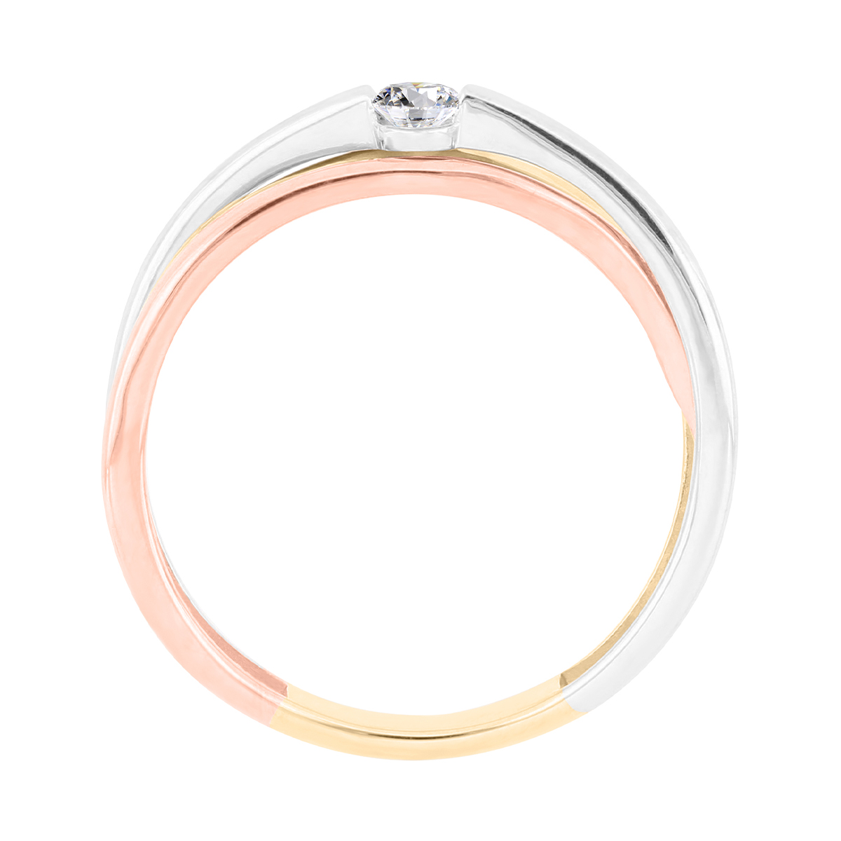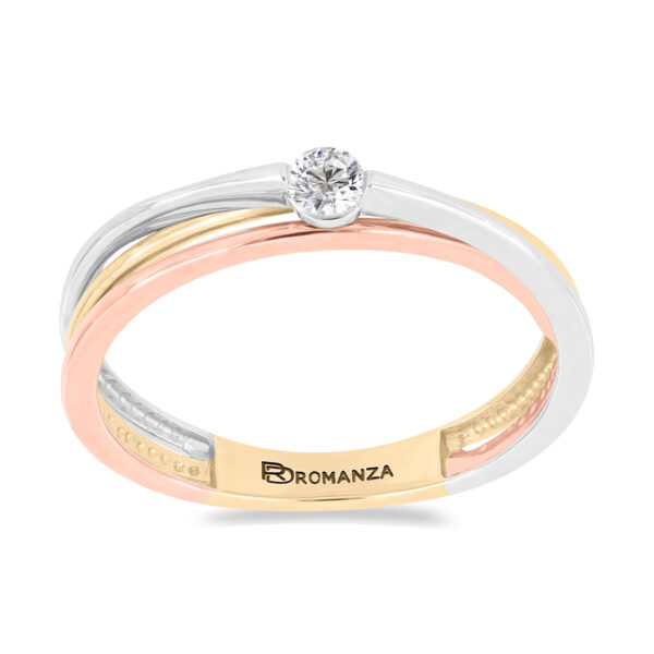 Anillo Solitario Ilusión con Centro 0.04 Quilates de Diamante en ORO COMBINADO de 14 kt