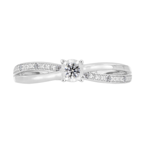 Anillo Solitario Ilusión con Montadura 0.10 Quilates de Diamante en Oro Blanco de 14 kt