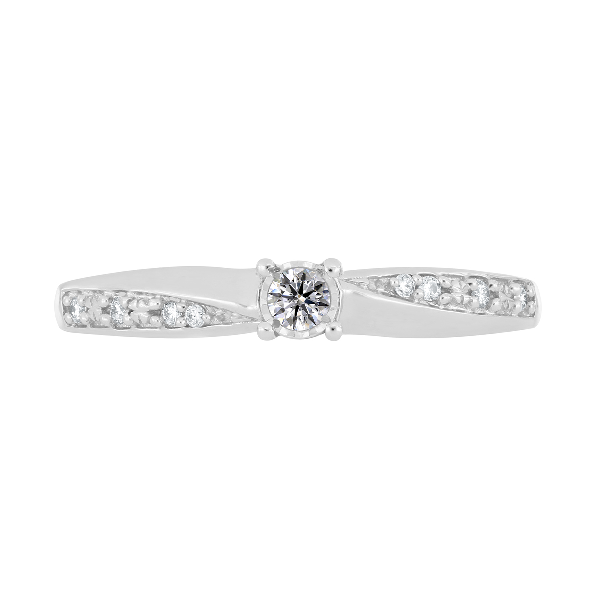 Anillo Solitario Ilusión con Montadura 0.15 Quilates de Diamante en Oro Blanco de 14 kt