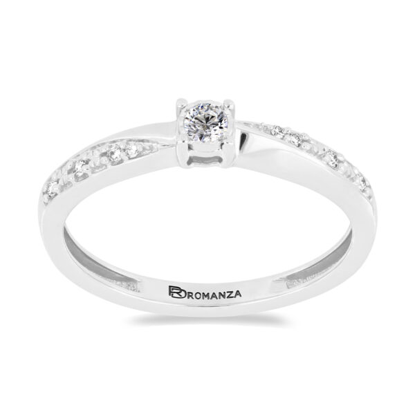 Anillo Solitario Ilusión con Centro 0.07 Quilates de Diamante en Oro Blanco de 14 kt
