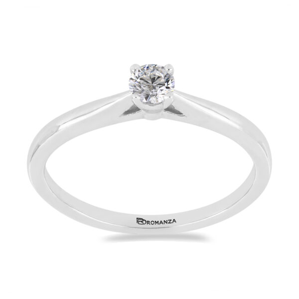 Anillo Solitario con Centro 0.17 Quilates de Diamante en Oro Blanco de 14 kt