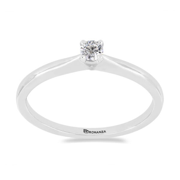 Anillo Solitario con Centro 0.10 Quilates de Diamante en Oro Blanco de 14 kt