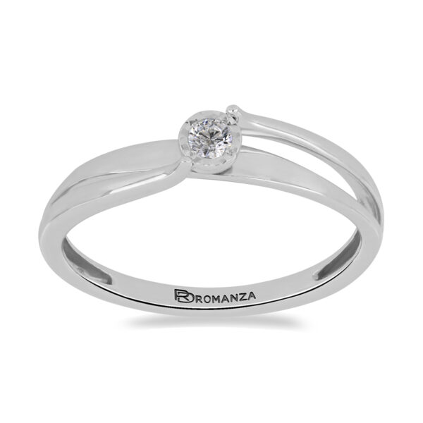 Anillo Solitario Ilusión con Centro 0.07 Quilates de Diamante en Oro Blanco de 14 kt