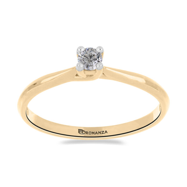 Anillo Solitario con Centro 0.12 Quilates de Diamante en Oro Amarillo de 14 kt