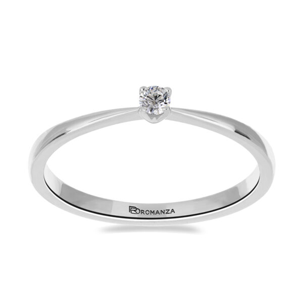 Anillo Solitario con Centro 0.06 Quilates de Diamante en Oro Blanco de 14 kt