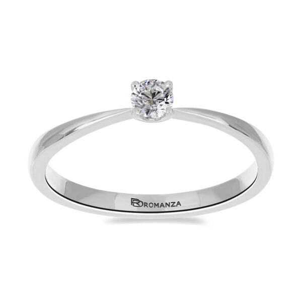 Anillo Solitario con Centro 0.15 Quilates de Diamante en Oro Blanco de 14 kt