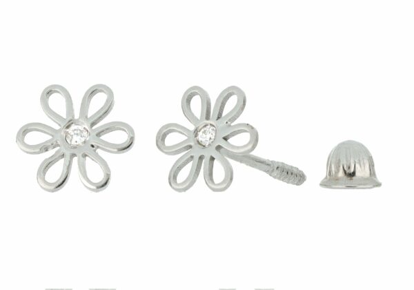 Aretes Bebé o Niña con Montadura 0.02 Quilates de Diamante en Oro Blanco de 14 kt