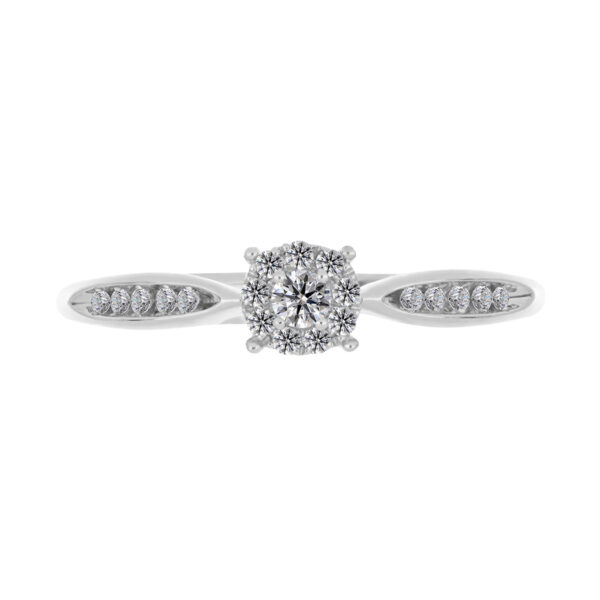 Anillo Solitario Roseta con Montadura 0.17 Quilates de Diamante en ORO BLANCO de 14 kt