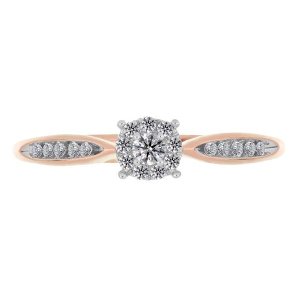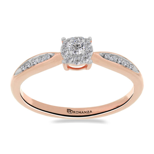 Anillo Solitario Roseta con Montadura 0.17 Quilates de Diamante en ORO ROSA de 14 kt