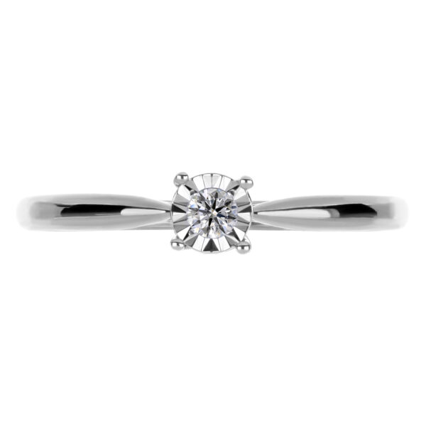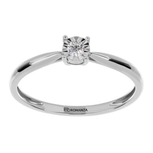Anillo Solitario Ilusión con Centro 0.06 Quilates de Diamante en ORO BLANCO de 14 kt