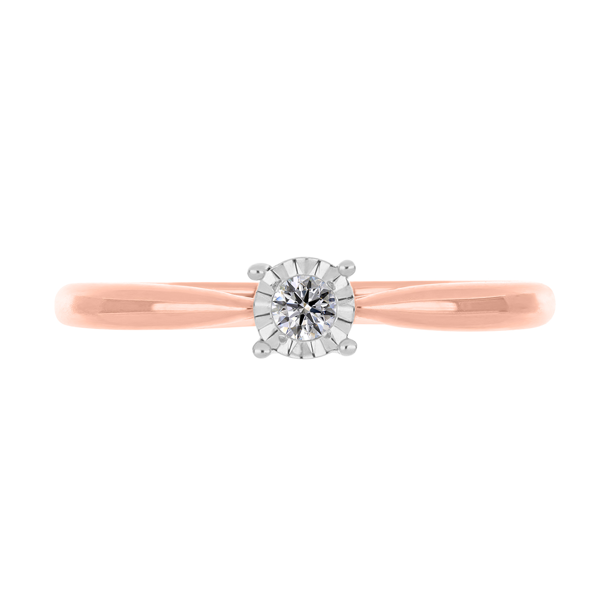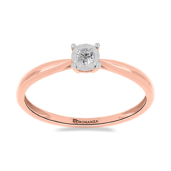 Anillo Solitario Ilusión con Centro 0.06 Quilates de Diamante en ORO ROSA de 14 kt