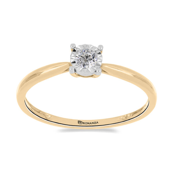 Anillo Solitario Ilusión con Centro 0.10 Quilates de Diamante en ORO AMARILLO de 14 kt