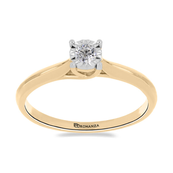 Anillo Solitario Ilusión con Centro 0.10 Quilates de Diamante en ORO AMARILLO de 14 kt