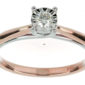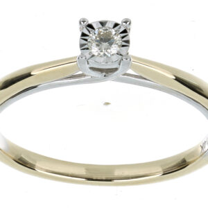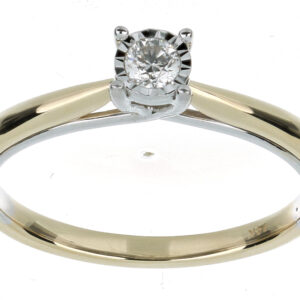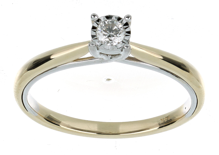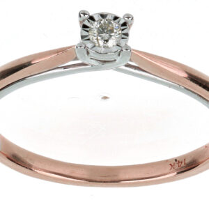 Anillo Solitario Ilusión con Centro 0.10 Quilates de Diamante en ORO COMBINADO de 14 kt