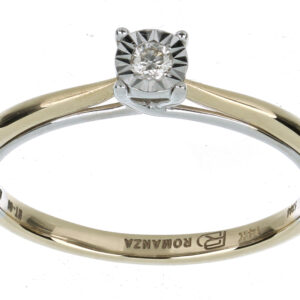 Anillo Solitario Ilusión con Centro 0.05 Quilates de Diamante en ORO COMBINADO de 14 kt