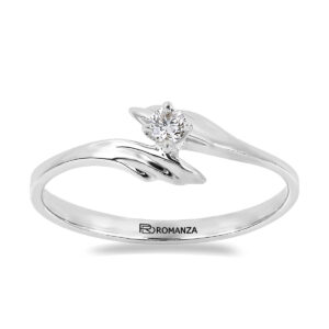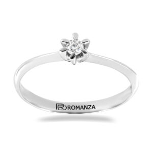 Anillo Solitario con Centro 0.04 Quilates de Diamante en Oro Blanco de 14 kt