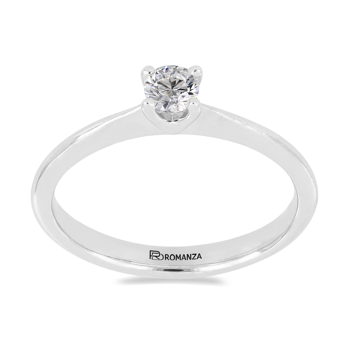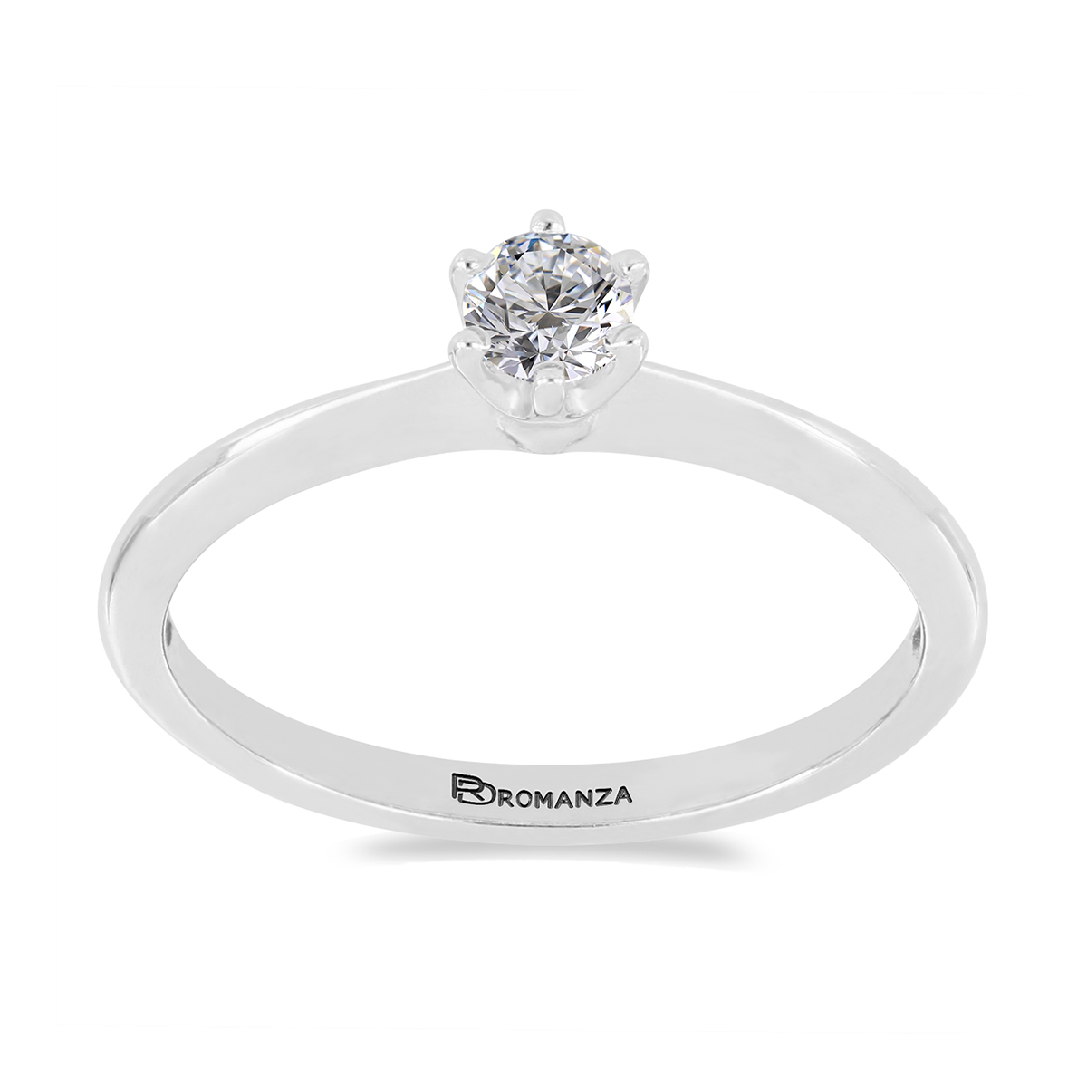 Anillo Solitario con Centro 0.20 Quilates de Diamante en Oro Blanco de 14 kt