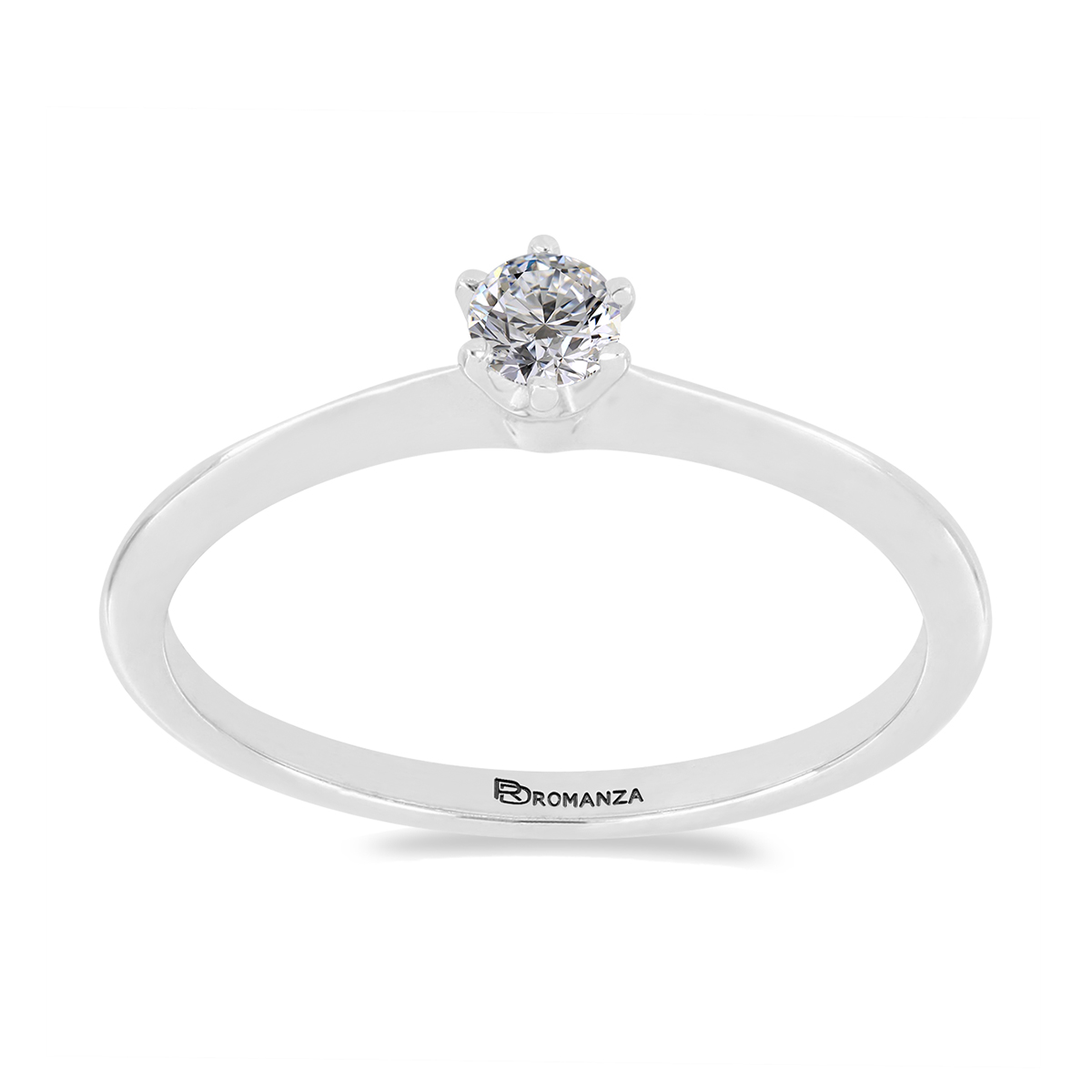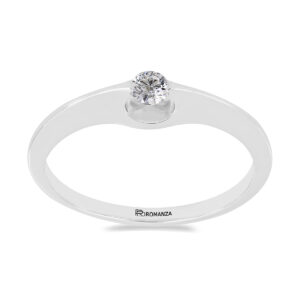 Anillo Solitario con Centro 0.12 Quilates de Diamante en Oro Blanco de 14 kt