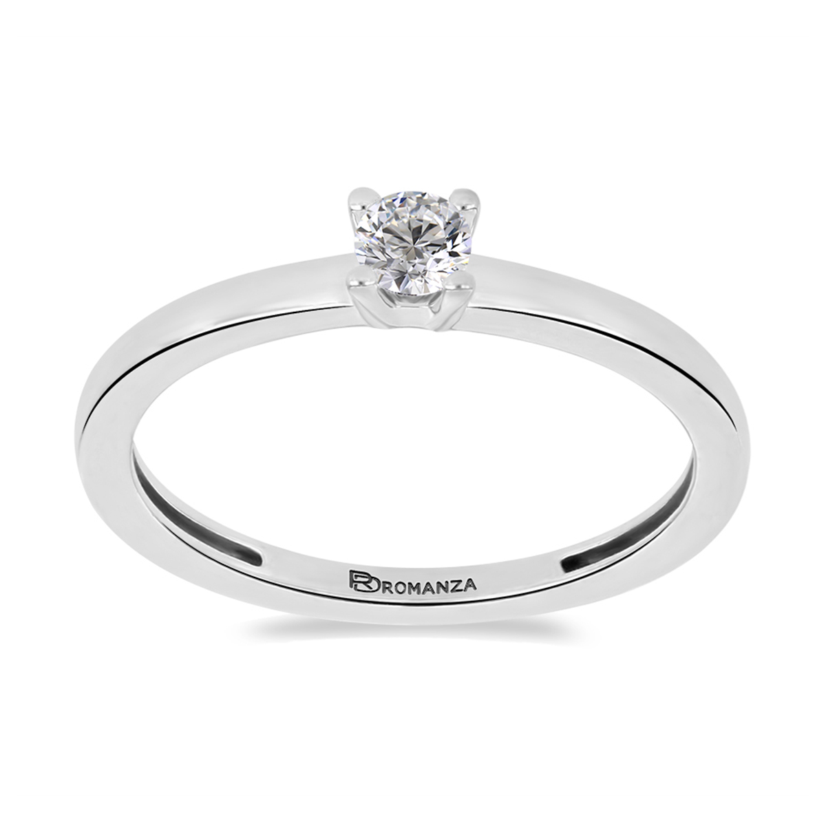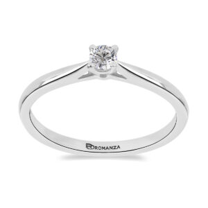 Anillo Solitario con Centro 0.15 Quilates de Diamante en Oro Blanco de 14 kt