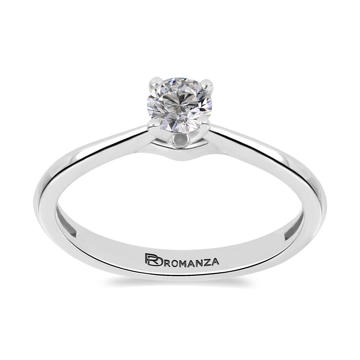Anillo Solitario con Centro 0.20 Quilates de Diamante en Oro Blanco de 14 kt