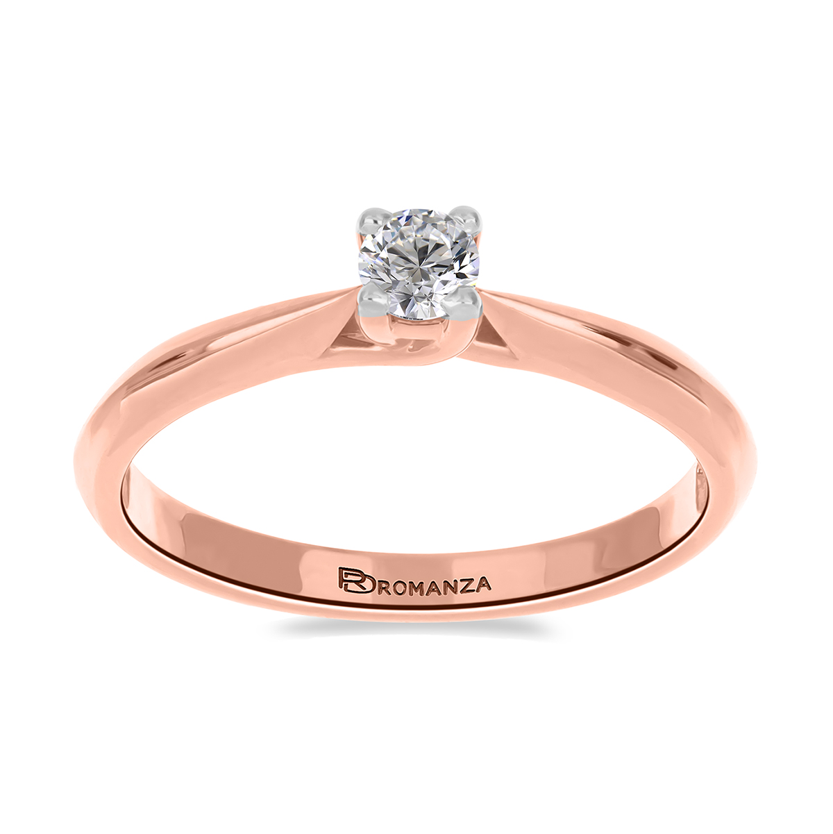 Anillo Solitario con Centro 0.17 Quilates de Diamante en Oro Rosa de 14 kt