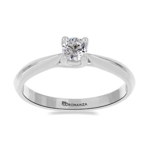 Anillo Solitario con Centro 0.20 Quilates de Diamante en Oro Blanco de 14 kt