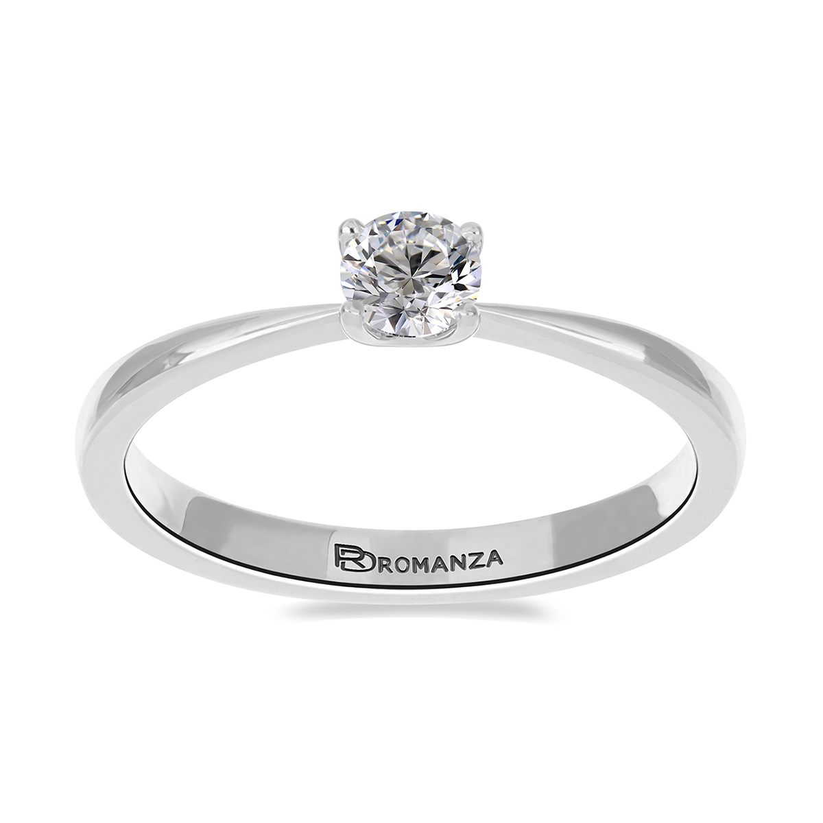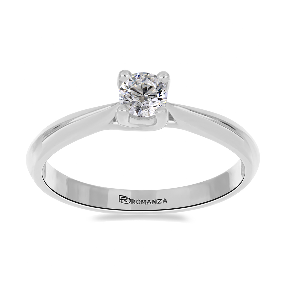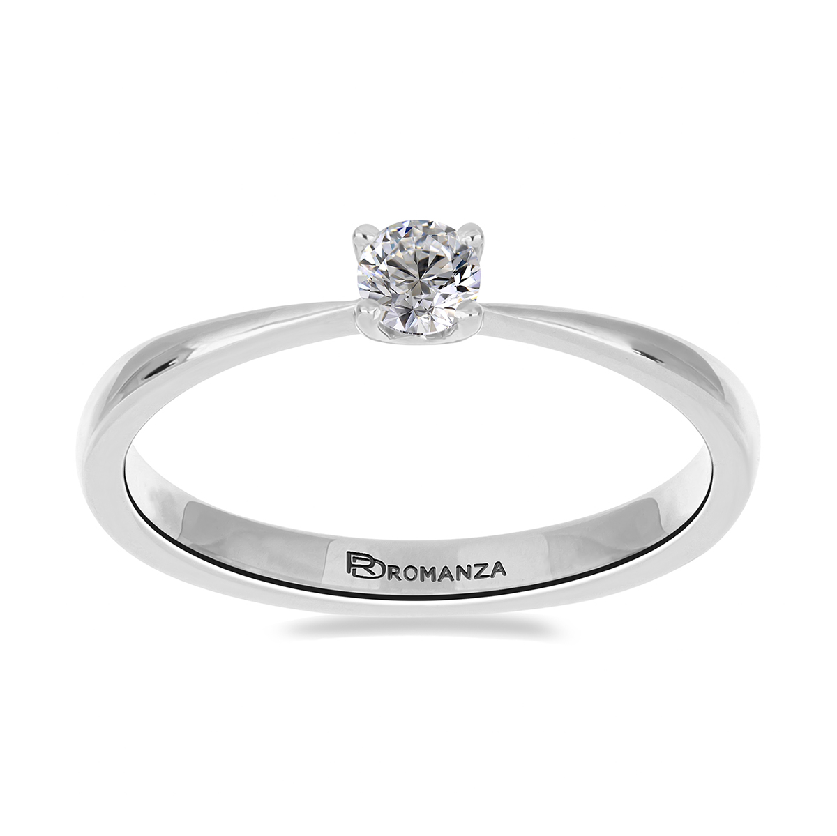 Anillo Solitario con Centro 0.20 Quilates de Diamante en Oro Blanco de 14 kt