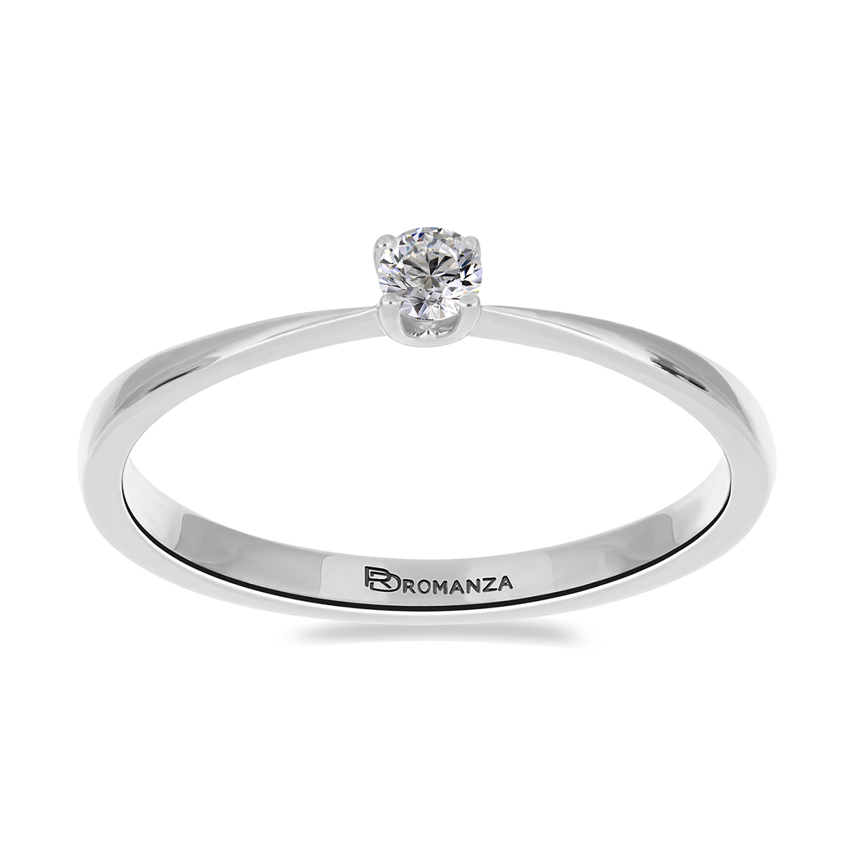 Anillo Solitario con Centro 0.15 Quilates de Diamante en Oro Blanco de 14 kt