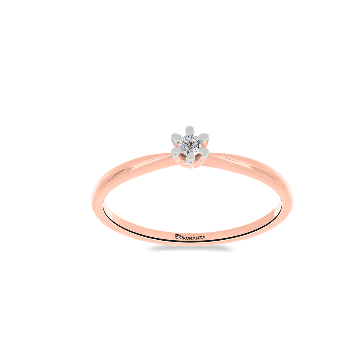 Anillo Solitario con Centro 0.05 Quilates de Diamante en Oro Rosa de 14 kt