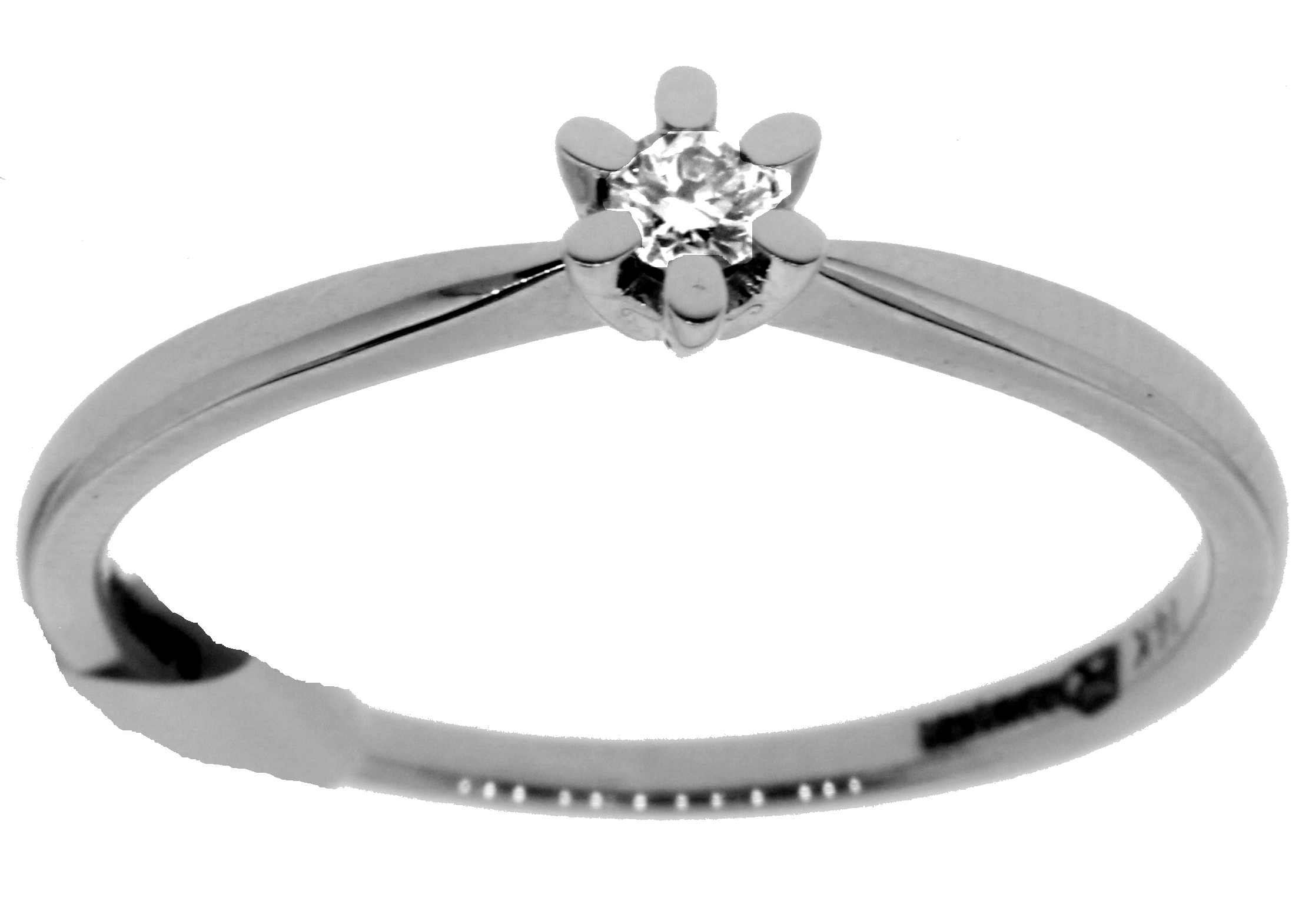 Anillo Solitario con Centro 0.10 Quilates de Diamante en ORO BLANCO de 14 kt