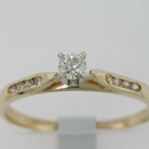 Anillo Solitario con Centro 0.15 Quilates y Montadura 0.09 Quilates de Diamante en Oro Amarillo de 14 kt