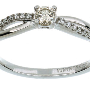 Anillo Solitario con Centro 0.20 Quilates y Montadura 0.12 Quilates de Diamante en ORO BLANCO de 14 kt