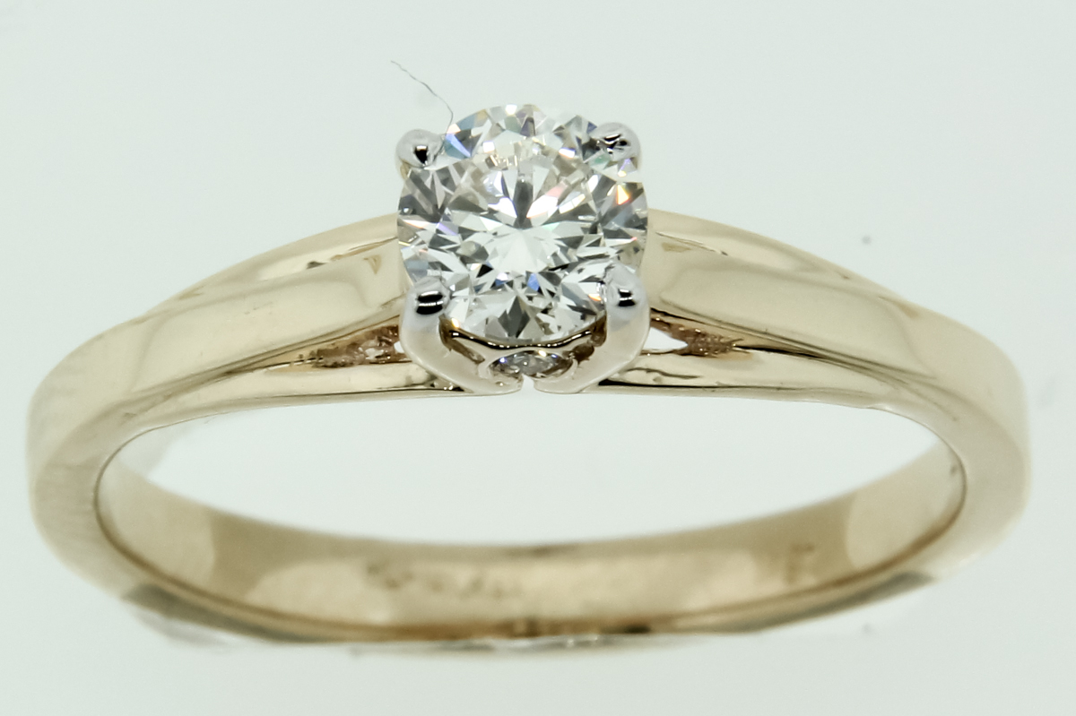 Anillo Solitario con Centro 0.20 Quilates y Montadura 0.11 Quilates de Diamante en Oro Amarillo de 14 kt
