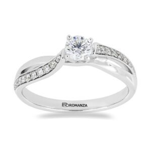 Anillo Solitario con Centro 0.30 Quilates y Montadura 0.17 Quilates de Diamante en Oro Blanco de 14 kt