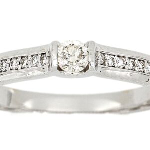 Anillo Solitario con Centro 0.15 Quilates y Montadura 0.11 Quilates de Diamante en Oro Blanco de 14 kt