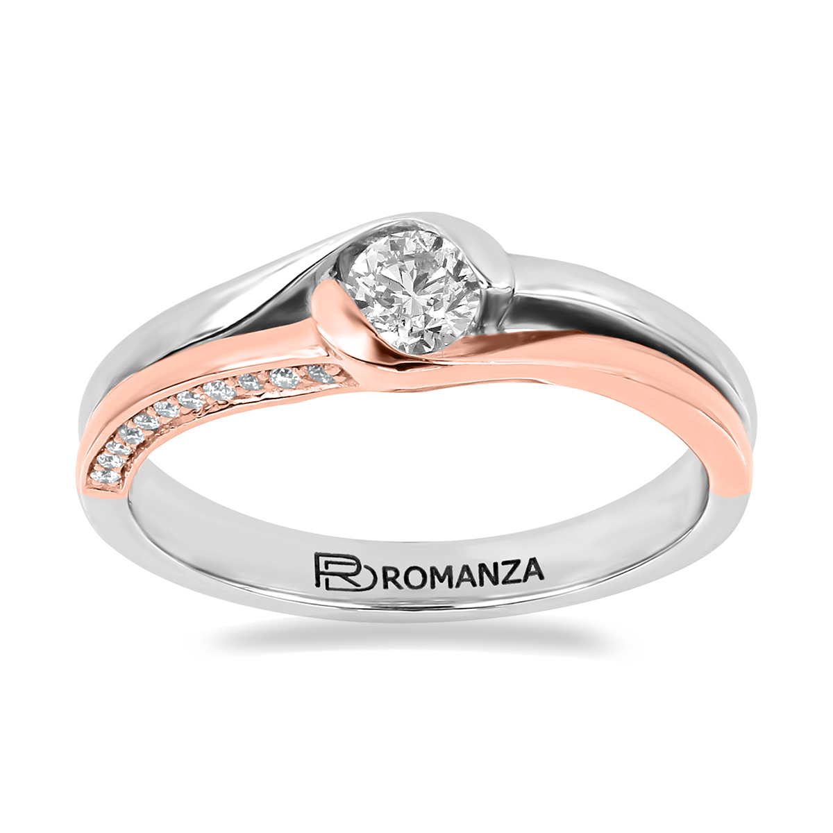Anillo Solitario con Centro 0.25 Quilates y Montadura 0.12 Quilates de Diamante en Oro Combinado de 14 kt