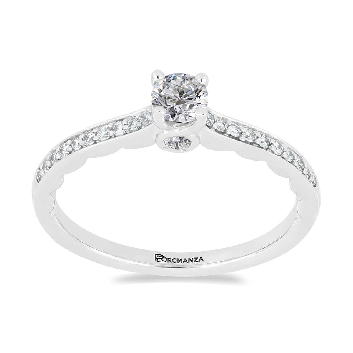 Anillo Solitario con Centro 0.30 Quilates y Montadura 0.17 Quilates de Diamante en Oro Blanco de 14 kt