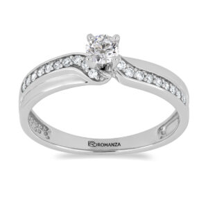 Anillo Solitario con Centro 0.20 Quilates y Montadura 0.14 Quilates de Diamante en Oro Blanco de 14 kt