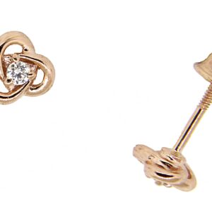 Aretes Bebé o Niña con Centro 0.05 Quilates de Diamante en Oro Rosa de 14 kt